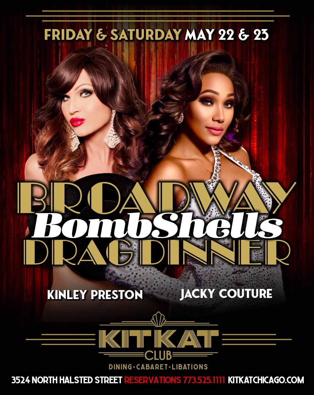 Join us for the Broadway Bombshells Drag Dinner! Fun pop music all night and themed costumes with the world famous Kit Kat Divas.