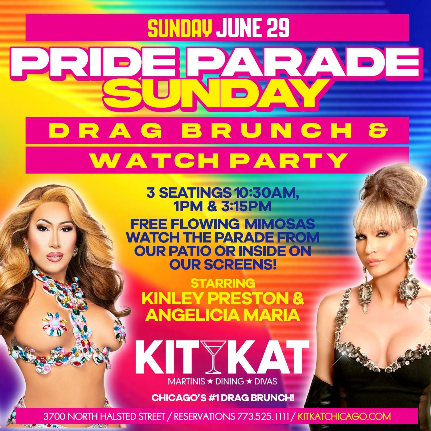 Join us for THE Chicago Pride Parade on June 29th! Drag Brunch will be in full swing at Kit Kat with Kinley Preston and Angelicia Maria!