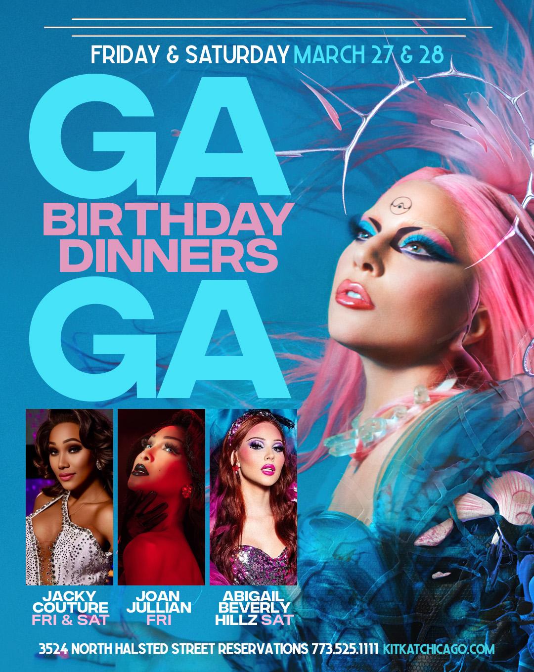 Join us for the Gaga Birthday Drag Dinner! Fun pop music all night and themed costumes with the world famous Kit Kat Divas.